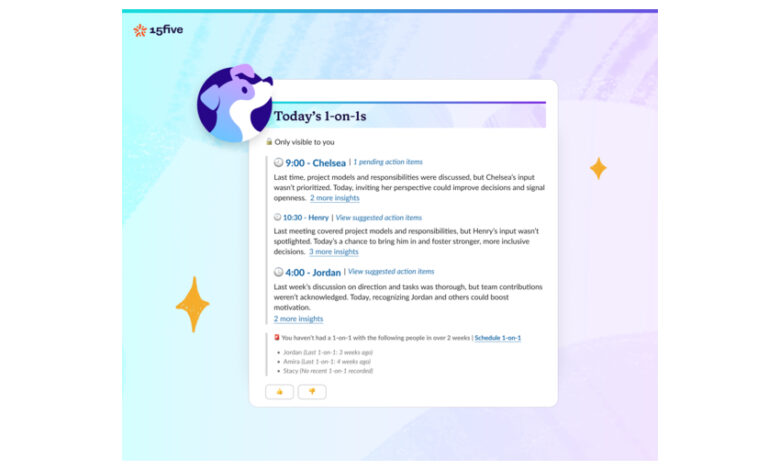 “We’ve heard CHROs and CEOs clearly: they need managers to be the drivers of business success,” said Sid Pandiya, 15Five’s General Manager of Manager Products and former CEO of Kona. “But being a manager is more complicated than ever before. Instead of one-size-fits-all solutions that HR hopes will work, 15Five’s manager products are personalized based on data such as performance reviews, engagement surveys, and manager effectiveness measurements, so everyone can focus on what matters most. Even in the early days of building Kona by 15Five, we’ve seen how personalization powered by data, combined with continuous measurement, enables HR to see where efforts are working and where they need to double down.”