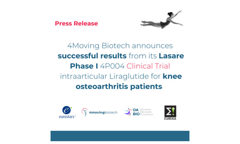 LILLE, France & PARIS–(BUSINESS WIRE)–4Moving Biotech, a spin-off of 4P-Pharma committed to developing first-in-class treatments to modify the natural course of knee osteoarthritis, announces the successful achievement of the Phase 1 Lasare trial in knee osteoarthritis (OA) patients using 4P004.
