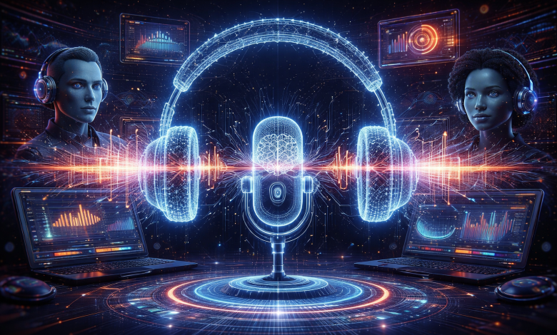 An AI podcast generator is software that uses AI to turn prompts, documents, scripts, or source material into spoken audio, usually with synthetic voices, editing assistance, or publish-ready output.
