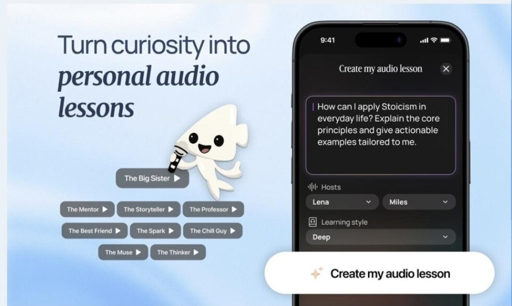 - personalized audio lessons from knowledge sources