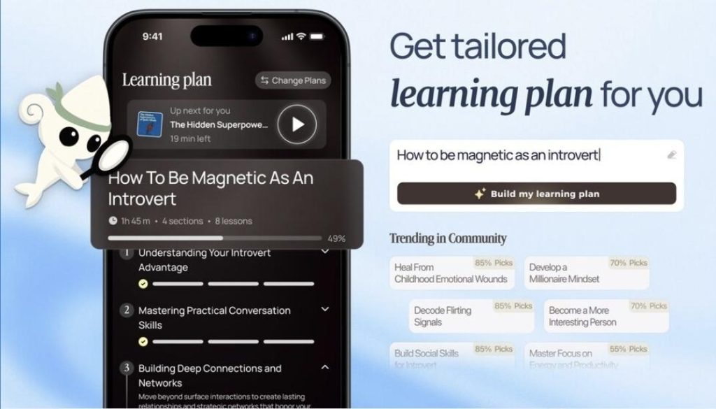 | BeFreed | Personalized audio learning | High | Audio lessons, review tools | Web, iOS, Android |