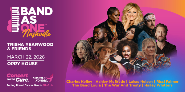 “This event continues to grow in reach, energy and impact,” said Senior Director of Entertainment Engagement and Events at Susan G. Komen, Joshua Daniel. “We’re deeply grateful to the artists who are lending their voices and hearts to this cause. Bringing Band As One Nashville to the Opry House creates a powerful night that celebrates music while allowing us to amplify our mission.”
