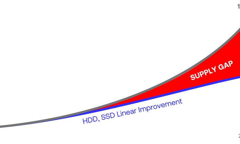 A classic supply gap is widening. The exponential growth curve of data is diverging from the increasingly flattening curve of storage-media capacity advancement. Hard-drive lead times are reportedly stretching beyond two years, and prices are rising.
