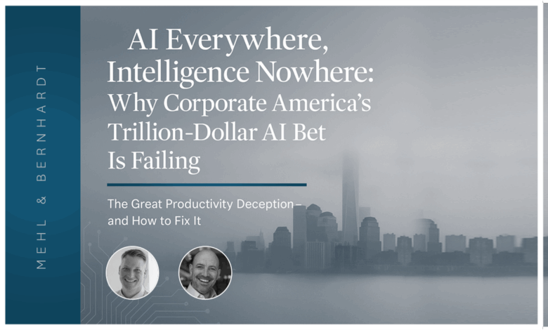 Labor productivity is falling across America. U.S. output per worker dropped 1.5% last quarter, while labor costs jumped significantly. Meanwhile, AI adoption has exploded throughout corporate America. Companies are deploying large language models across every business function, investors are betting trillions on digital transformation, yet national productivity metrics aren’t moving upward.