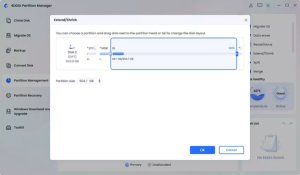 Step 2. Drag the slider on your C drive to extend it to your desired size and click “OK” then “OK” in the pop-up window.