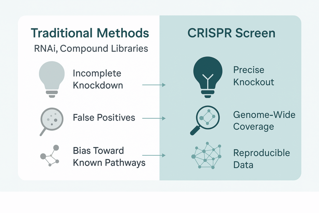 For years, RNAi and compound library screening were the standard tools for functional genomics. They played their part, but both suffer from critical flaws: incomplete knockdowns, high false positives, and a bias toward known pathways. These blind spots mean drug developers may walk straight past the very targets that could unlock a breakthrough.