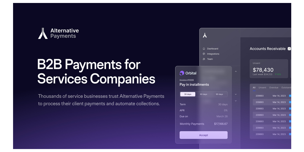 Alternative Payments is the first payments company to embed collections support within their product and help services companies get paid faster, even if their invoices are overdue and customers are refusing to pay.