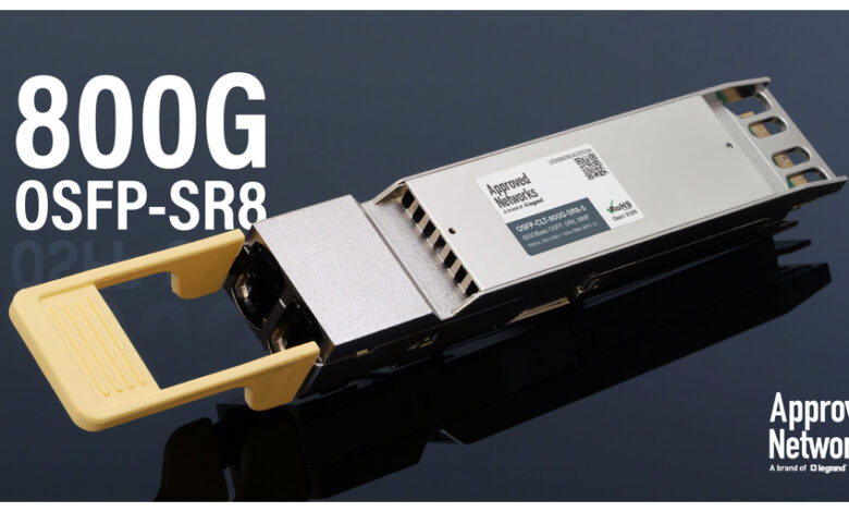 LAKE FOREST, Calif.–(BUSINESS WIRE)–Approved Networks, a brand of Legrand, the leading provider of optical networking technology, today announced the general release of its new OSFP 800G SR8 transceiver. This state-of-the-art transceiver exceeds high-speed data transmission standards, providing a new solution for data centers and broadband providers to support data-intensive applications and enable real-time AI processing across networks.