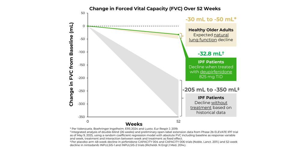 Deupirfenidone 825 mg TID slowed lung function decline in people with idiopathic pulmonary fibrosis (IPF) to the range expected of healthy older adults over 6 months;... Read more.