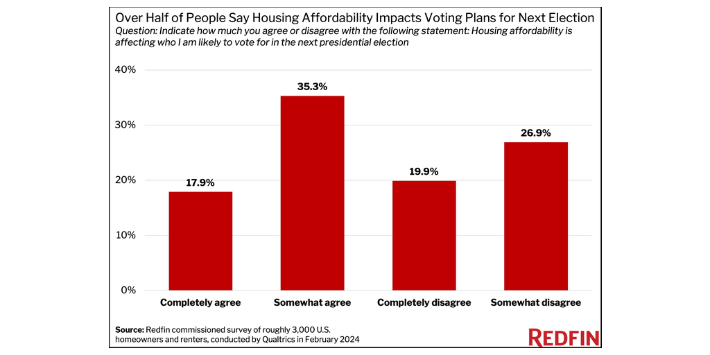 Redfin Survey: Majority of U.S. Homeowners and Renters Say Housing Affordability Affects Their Pick for President