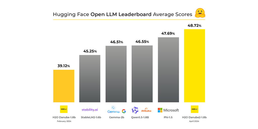 H2O-Danube2-1.8B Achieves Top Ranking on Hugging Face Open LLM Leaderboard for 2 Billion (2B) Parameters Range