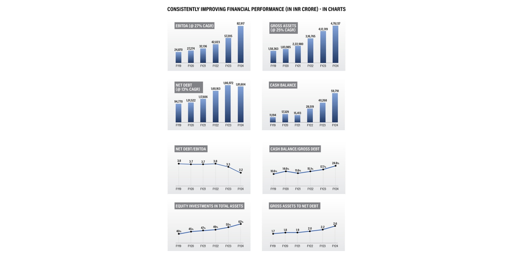 45% EBITDA growth in FY24, EBITDA reaches USD 10 Bn Adani Portfolio EBITDA increased to USD 10 Bn, up by record 45% Y-o-Y 84% of EBITDA is through “Core Infrastructure”... Read more.