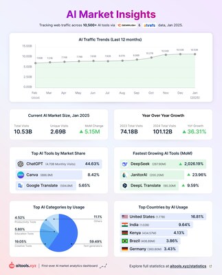AItools.xyz Unveils Real-Time AI Market Data, Tracking 10.5B+ Monthly Visits Across 10,500+ AI Tools