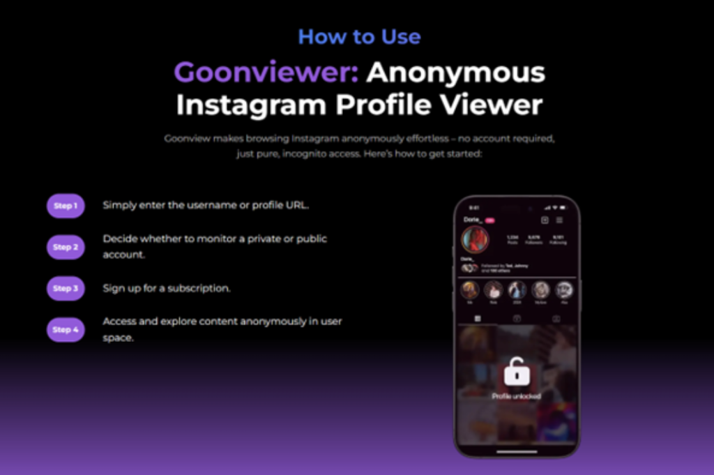 Goonview markets itself as an Instagram viewer that works without an Instagram account. You enter a username, and it pulls up what’s available to view publicly. The main appeal is speed and simplicity. It’s built around “no sign-up” browsing, which helps reduce the risk of landing on fake login screens. It also positions itself as a public-only style option, meaning private posts still stay private. That makes it better suited for quick reality checks than for chasing “private access” promises.