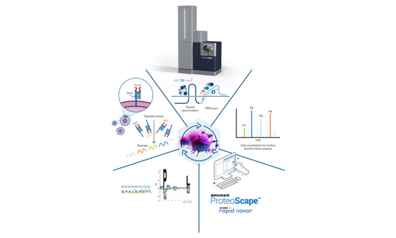 Bruker enhances its timsTOF HT and timsTOF Ultra systems with the new software Novor v2.0 for de novo immunopeptidomic profiling. Novor v2.0, developed in collaboration with Rapid Novor Inc., was trained on >1,400,000 spectra mapping to >150,000 HLA peptides for research on small amounts of patient material derived from fine needle biopsies.