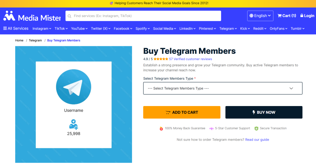 They’veย been active in the social growth space for years, whichย shows inย how clearly their service is structured. Beyond Telegram, they cover a wide range of platforms, meaning their experience across different audience types runs deep. The service delivers real member profiles, not automated or low-quality accounts, added directly to your channel or group after checkout.ย