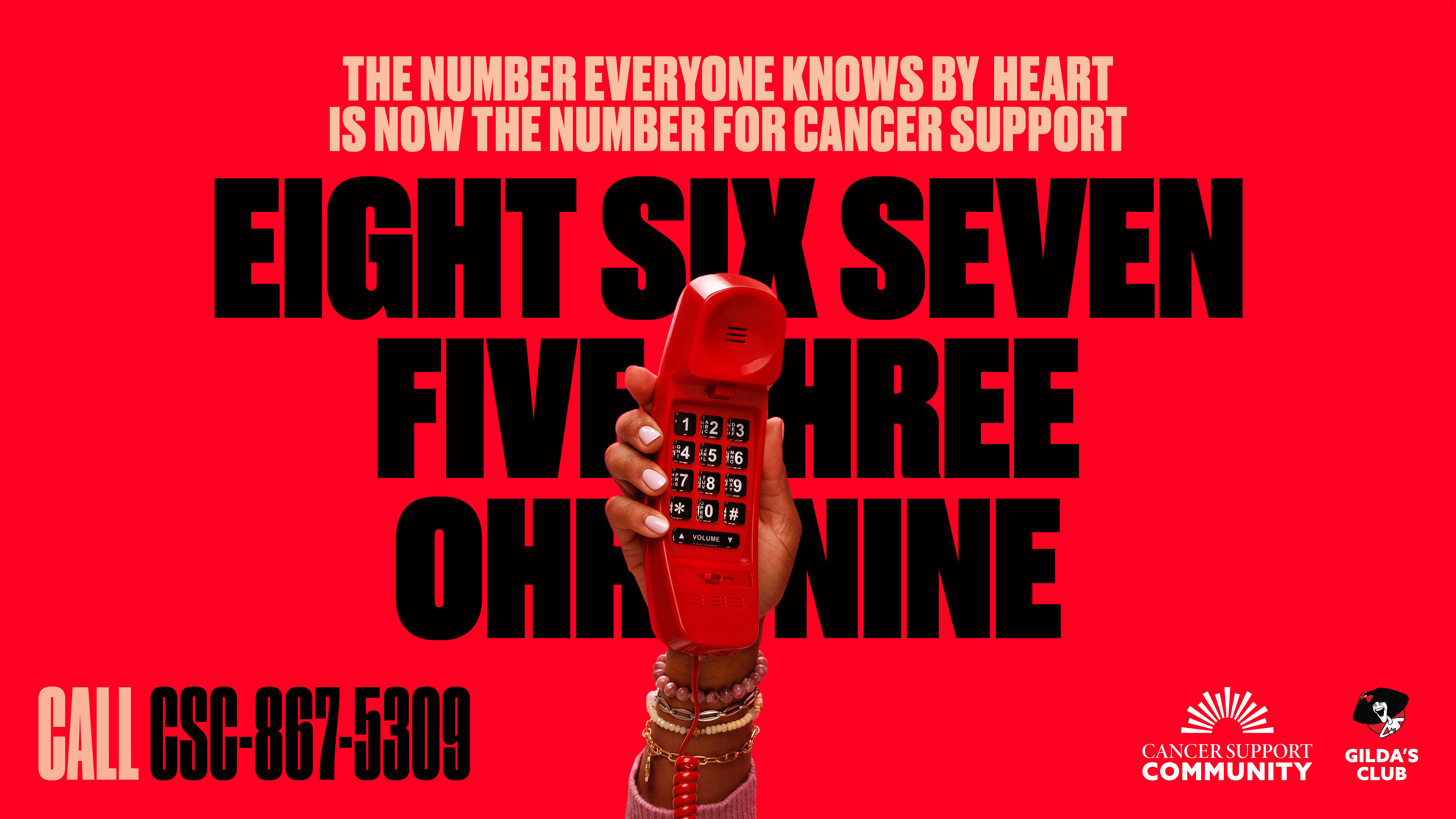 Sally Werner, CEO of Cancer Support Community, said: “Our Helpline receives over 20,000 calls annually from people seeking hope and connection during the times they need it most. By anchoring CSC-867-5309 into the public consciousness, we’re ensuring that when someone is impacted by cancer, Cancer Support Community and Gilda’s Clubs are the first place they turn to.”