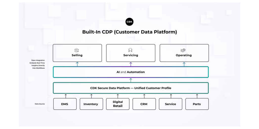AUSTIN, Texas–(BUSINESS WIRE)–#CDK—CDK, the leading automotive retail software provider, today announced the launch of its Customer Data Platform (CDP) that unifies fragmented customer information and delivers real-time, actionable insights across the dealership. Powered by the industry’s largest dataset, the Built-In CDP enriches consumer information across the CDK Dealership Xperience (DXP), enabling dealers to utilize clean, trusted customer data without adding new systems, logins, or operational complexity.