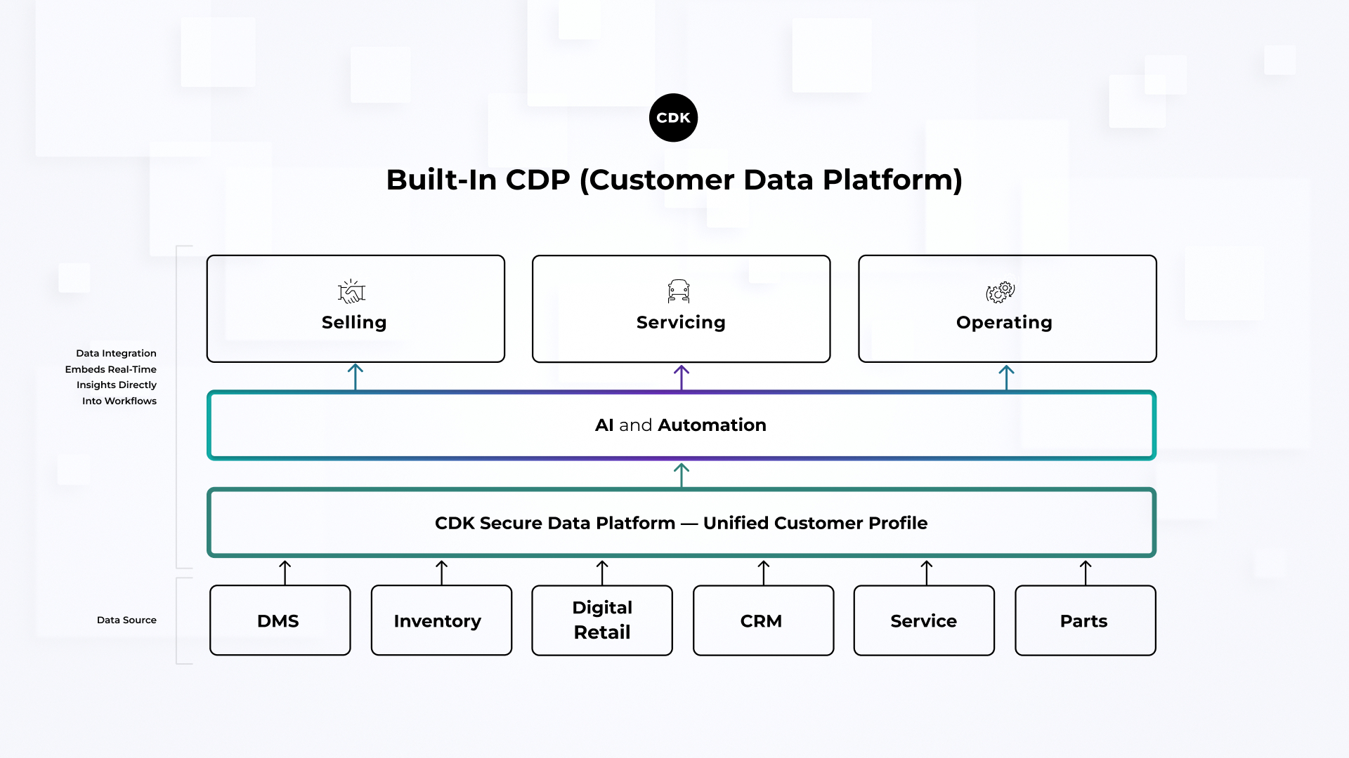 AUSTIN, Texas–(BUSINESS WIRE)–#CDK—CDK, the leading automotive retail software provider, today announced the launch of its Customer Data Platform (CDP) that unifies fragmented customer information and delivers real-time, actionable insights across the dealership. Powered by the industry’s largest dataset, the Built-In CDP enriches consumer information across the CDK Dealership Xperience (DXP), enabling dealers to utilize clean, trusted customer data without adding new systems, logins, or operational complexity.