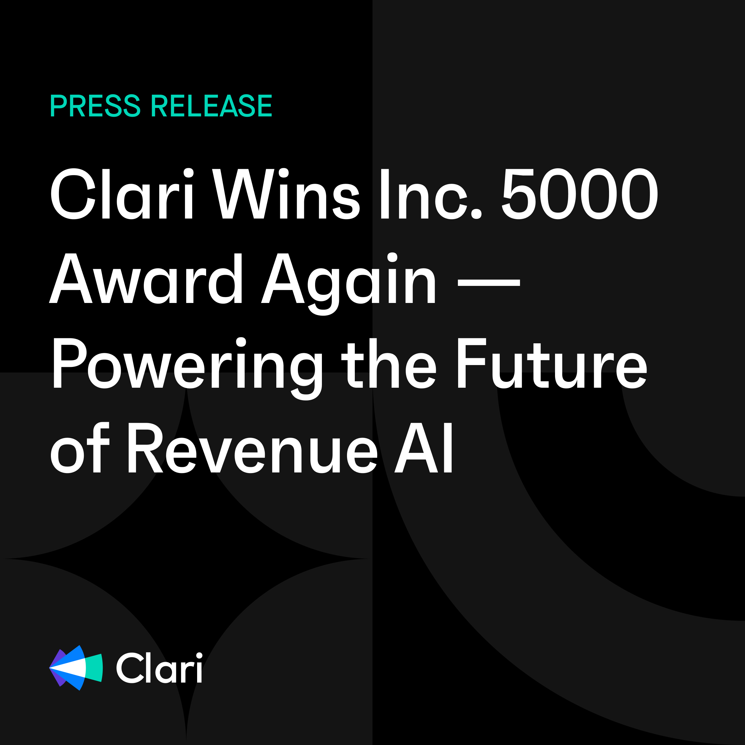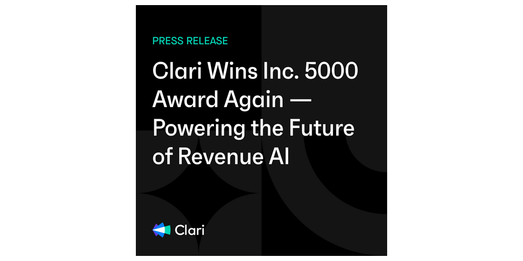 SUNNYVALE, Calif.–(BUSINESS WIRE)–Clari today announced its inclusion in the annual Inc. 5000 list for the fourth consecutive year. This list is the most prestigious ranking of the fastest-growing private companies in America. The list provides a data-driven snapshot of the most successful companies within the economy’s most dynamic segment — its entrepreneurial businesses. Past honorees include companies such as Microsoft, Meta, and Oracle.