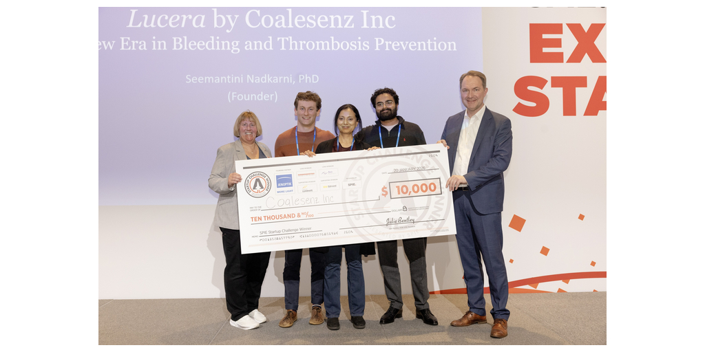 BELLINGHAM, Wash.–(BUSINESS WIRE)–SPIE, the international society of optics and photonics, announced Coalesenz Inc. as the $10,000 first prize winner of their 16th annual SPIE Startup Challenge at Photonics West in San Francisco. The winning pitch was for Lucerix CZ, a hand-held coagulation analyzer that returns actionable results in 5 to 10 minutes at the point of care.