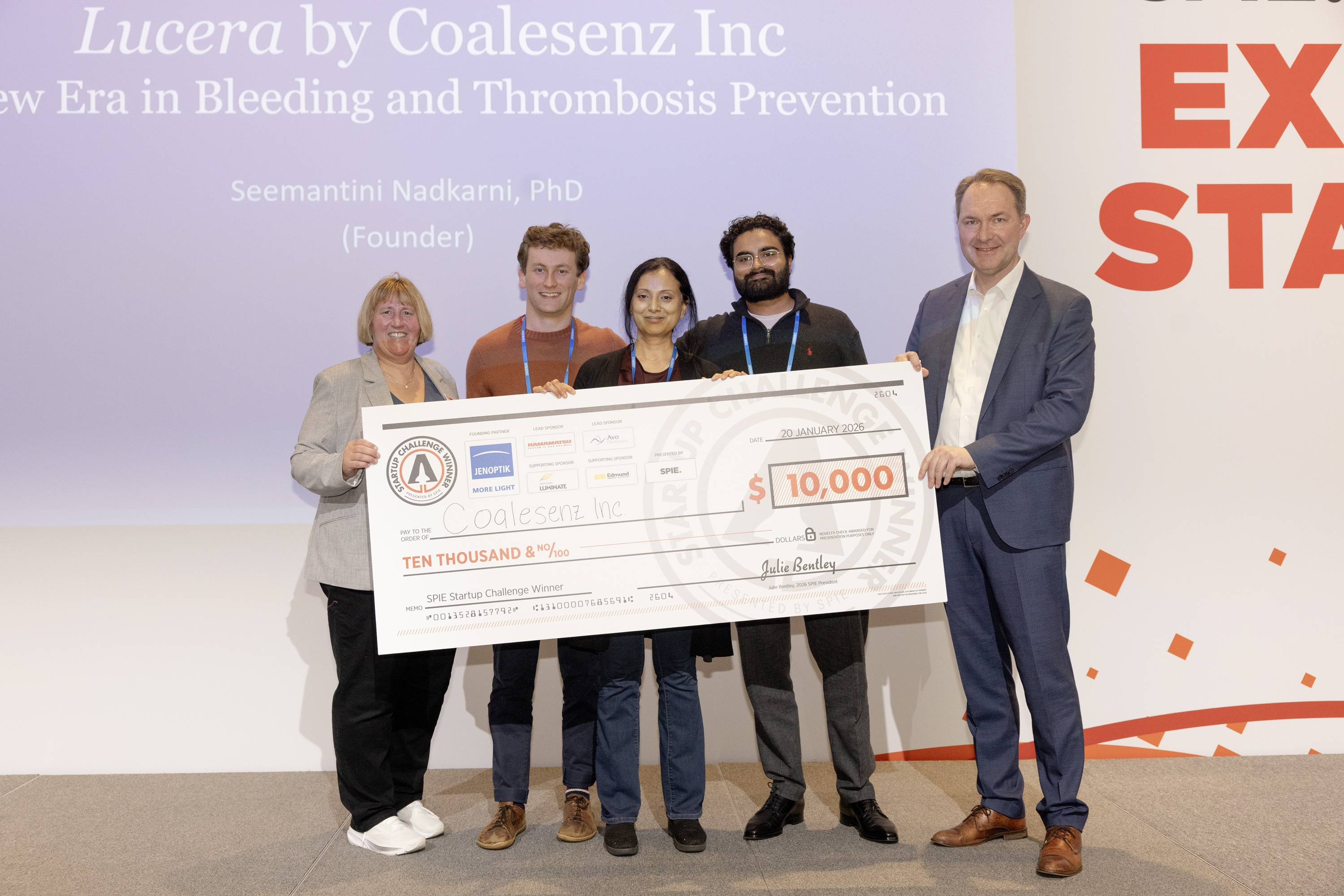 “This is tremendously exciting,” Coalesenz Inc., Founder, Seemantini Nadkarni, said after her big win. “I’ve been involved with SPIE since I was a PhD student a long time ago. I started off in medical imaging and then moved into optics. We always come to the Startup Challenge and it’s really awesome to be a part of it, and also win today.”