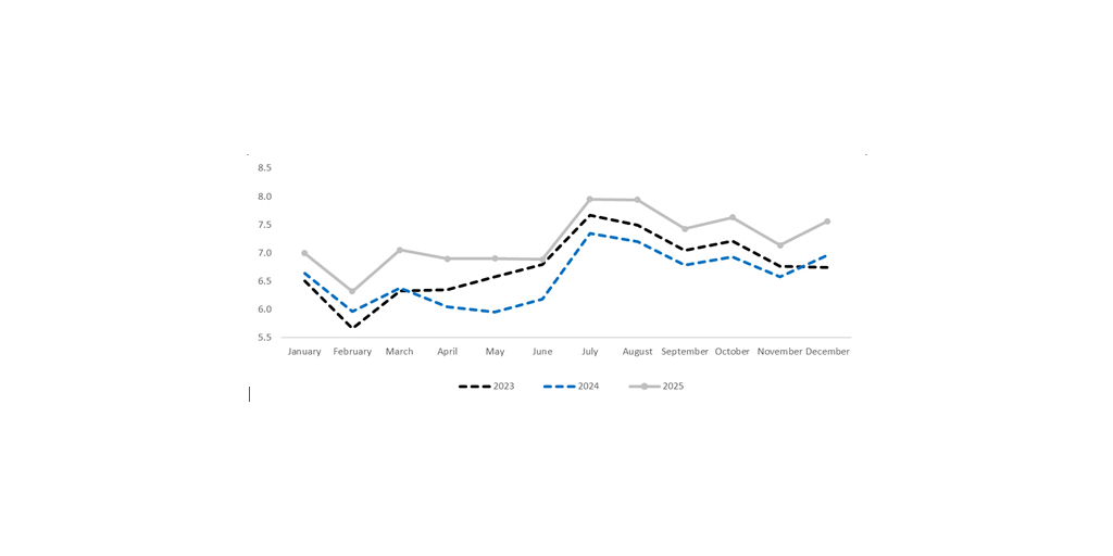 International passenger traffic up 12.1% YoY in December; up 11.0% YoY in 2025
