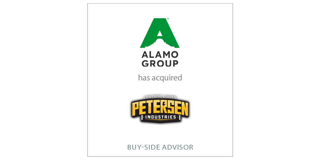 โPetersen is a great addition to Alamoโs industrial equipment segment,โ stated Eric Stetler, Managing Director and Head of Diversified Industrials and M&A at D.A. Davidson. โWe appreciated the opportunity to work with the Alamo team on this important transaction. We look forward to seeing the future growth from Petersen as part of Alamo.โ