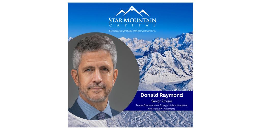NEW YORK–(BUSINESS WIRE)–Star Mountain Capital, LLC (“Star Mountain”), a rapidly growing, employee-owned investment firm with approximately $4.5 billion in assets under management (โAUMโ), is pleased to announce that Donald Raymond has joined the firm as a Senior Advisor. Dr. Raymond will add value to Star Mountain by supporting investment and portfolio construction efforts, contributing to firmwide thought leadership through his rigorous, research-driven approach and leveraging his senior leadership experience at Qatar Investment Authority (QIA) and Canada Pension Plan Investment Board (CPP Investments).