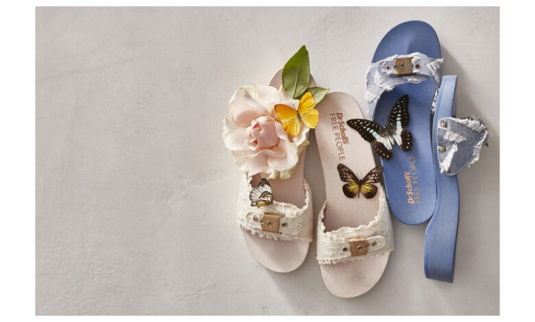 Dr. Scholl’s Shoes x Free People unites two brands that embrace creativity, comfort and original style. The result is a fresh spin on two classic materials – denim and eyelet – on the iconic silhouette that has graced countless festivals throughout the eras and is sure to be a wardrobe staple throughout spring and summer.