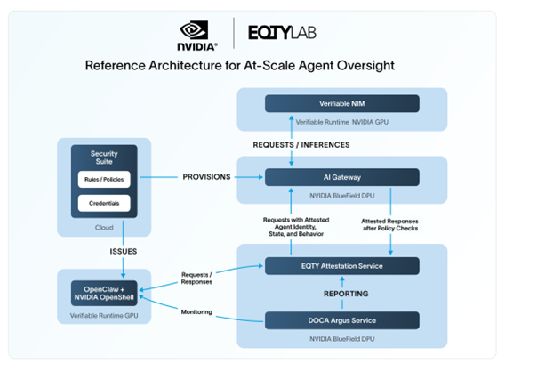 SAN JOSE, Calif.–(BUSINESS WIRE)–GTC 2026 – EQTY LAB announced today at NVIDIA GTC 2026 the launch of its new Verifiable Runtime, a solution engineered to secure and optimize autonomous AI agents running on the NVIDIA Enterprise AI Factory with NVIDIA OpenShell. The proliferation of AI agents from local desktop environments to the enterprise server core has created a massive trust gap, making verifiable behavior the final hurdle to scaling the agent economy. Verifiable Runtime addresses this challenge by leveraging EQTY’s Verifiable Compute Framework, delivering hardware-rooted oversight to ensure AI agents are secure and accountable.