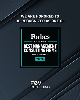 AACHEN, Germany and AUBURN HILLS, Mich., March 26, 2026 /PRNewswire/ — FEV Consulting, a global leader in management consulting and strategic advisory services, has been named to Forbes’ list of “America’s Best Management Consulting Firms” 2026, compiled in collaboration with Statista. Previously honored in 2022 and 2023 on Forbes’ global ranking, FEV Consulting now receives this honor specifically for its outstanding impact in the U.S. market. The recognition highlights the company’s continued commitment to delivering high-impact consulting services and helping clients solve complex strategic challenges in technology-driven industries.
