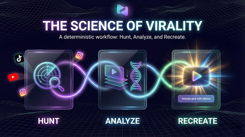 Creating viral videos follows a clear professional workflow: Discover what works, break it down, then rebuild it.ย