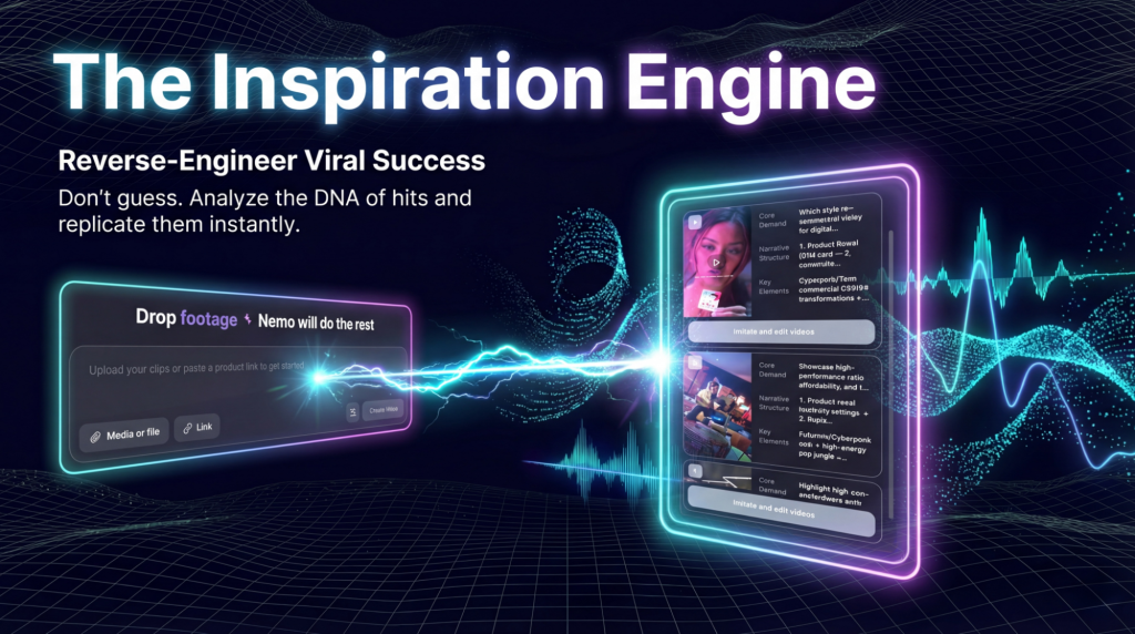 Thatโs where NemoVideo comes in – the first professional-grade system that makes viral video breakdowns accessible, simple, and affordable. Think of autonomous AI operatives that parse every frame, waveform, & pixel like forensic experts. It uses the interactive Hunt โ Analyze โ Recreate workflow; the โHuntโ looks for trends, the โAnalyzeโ maps the genome, and the โRecreateโ spits out exactly the right blueprints for viral video creation. Deterministic generation at its finest!