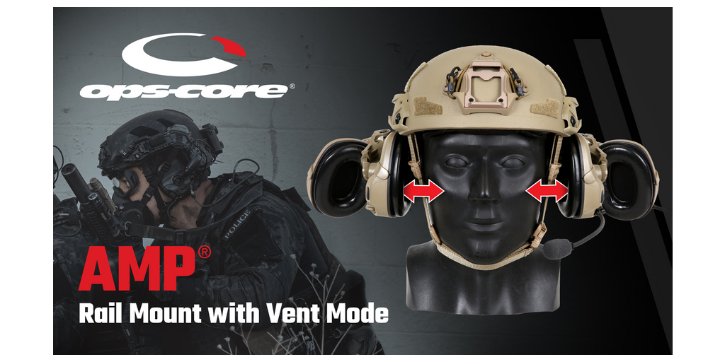 The new rail mount maintains the same familiar form factor, world-class durability and rugged performance as the original AMP Rail Mount. It is designed to offer increased stability during dynamic movements and remains fully compatible with Ops-Core NFMI Earplugs for double hearing protection. The AMP Rail Mount with Vent Mode is available in three colors: tan 499, black, and ranger green.