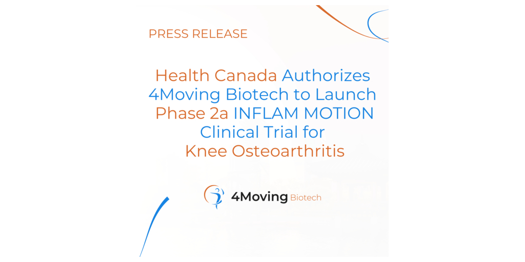 - Health Canadaโs approval enables 4Moving Biotech to initiate the INFLAM MOTION Phase 2a clinical trial