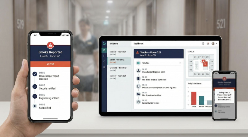 Picture a housekeeper who smells smoke. She taps the emergency icon in her app. Instantly, security, engineering, and the general manager receive push alerts with her exact floor and room. Fire doors unlock, evacuation scripts reach guest phones, and the local fire department is auto-dialed if the alarm panel confirms heat rise. Every action timestamps itself for post-event review.