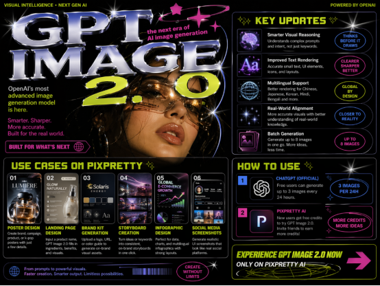 PixPretty Online has already integrated the latest GPT Image 2.0 model, allowing users to access these advanced capabilities directly in an easy-to-use, browser-based interface.