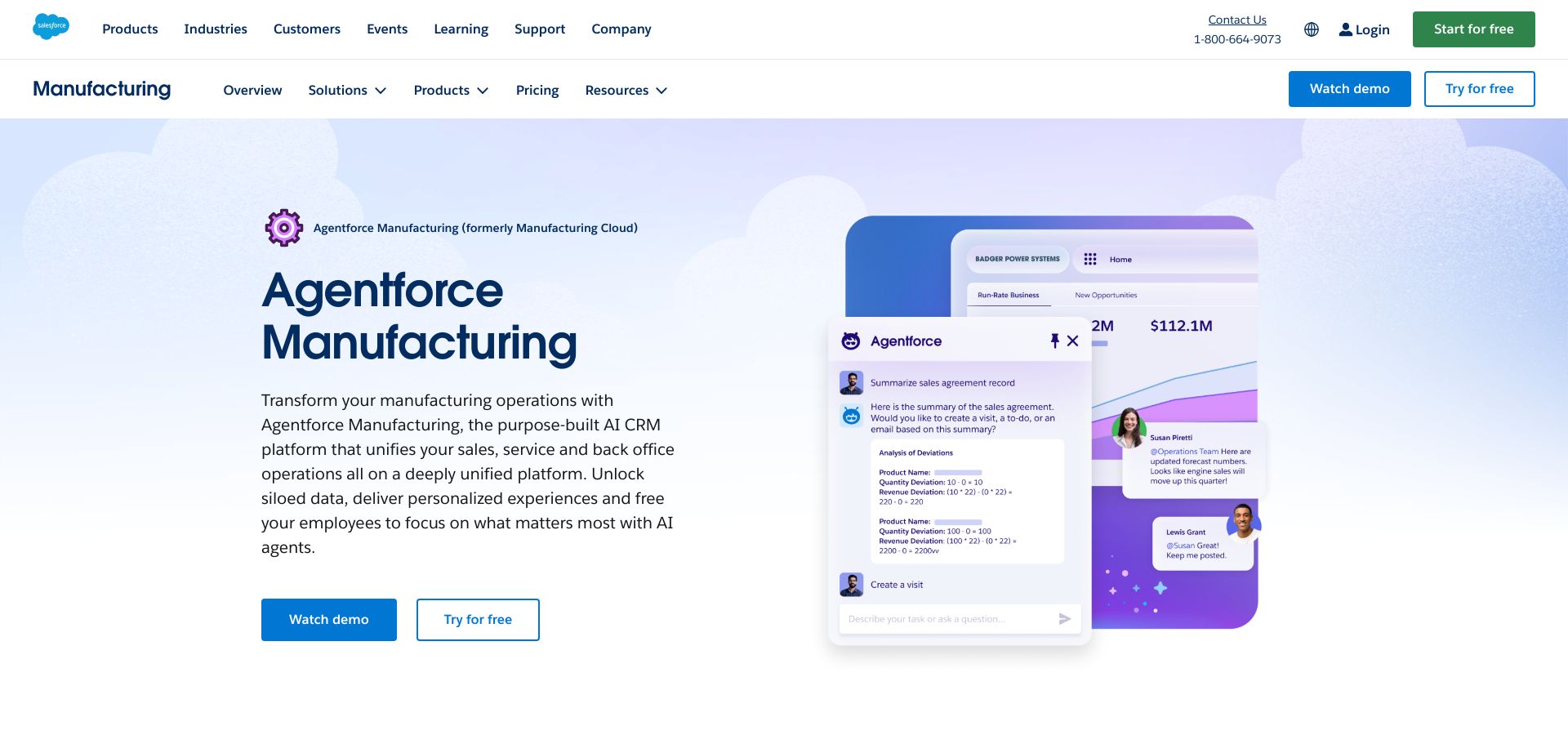 Salesforce Manufacturing Cloud and Customer 360 for industrial manufacturers.
