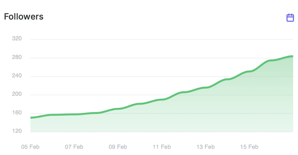 Within her first week, her account grew to over 280 followers, gaining more than 100 real followers organically. This growth came from increased exposure to users already interested in knitting, yarn, and fiber arts. As more relevant users discovered her profile, they began following and engaging with her content, which helped strengthen her account’s overall performance.