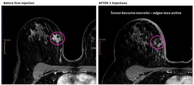 Women with aggressive forms of breast cancer, such as TNBC, are often counseled to undergo pre-surgical (neoadjuvant) systemic therapy in advance to reduce the risk of the disease returning. Having a pathological complete response, meaning the absence of live cancer at the time of surgery, has been shown to result in a lower risk of recurrence. Approximately 11-17% of breast cancers test negative for estrogen receptors (ER), progesterone receptors (PR), and overexpression of human epidermal growth factor receptor 2 (HER2) protein, qualifying them as triple negative. There are approximately 56,000 new cases of TNBC in the US and 420,000 Worldwide diagnosed each year, the majority of which are local to the breast. TNBC is considered to be more aggressive and has a poorer prognosis than other types of breast cancer, because there are fewer available targeted medicines. Most patients with local TNBC typically receive immune/chemotherapy before surgery. Since the publication of Keynote-522, the standard neoadjuvant treatment for TNBC includes systemic chemotherapy (anthracyclines, cyclophosphamide, paclitaxel, carboplatin) and the anti-PD-1 monoclonal antibody pembrolizumab. pCR rates are 65%, with rates generally lower in the larger-sized tumors or with lymph node metastasis. The toxicity of the Keynote-522 regimen is high, with 80% of patients experiencing grade 3 or higher treatment-related AEs, including treatment-related adverse events that lead to death in 0.5% of patients.