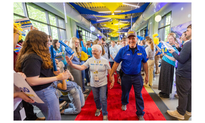 This year’s Million Mile drivers and their families, led by an emphatic entrance from the Bentonville West High School marching band, made their way along a 300-foot red carpet that spanned two buildings. They were first greeted by the company’s executive leadership team, who thanked each for their long-term commitment to safety excellence and expressed how grateful they are to have them as part of the J.B. Hunt family. The remainder of the Walk of Fame featured cheers and high-fives from thousands of company employees, customers, investors and guests who lined the red carpet to celebrate.