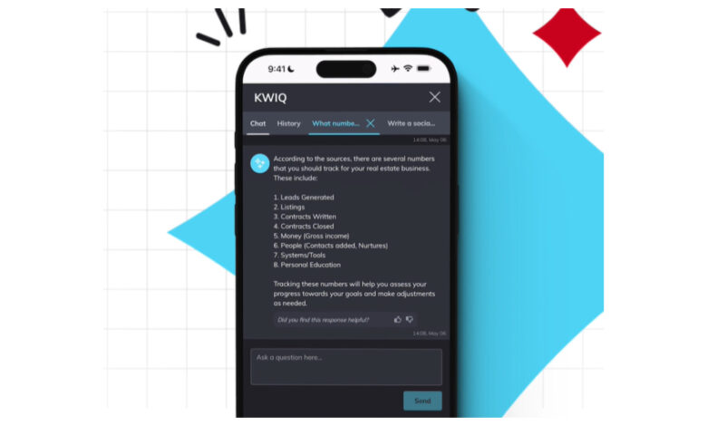 “With KWIQ, agents have an ‘always on’ assistant that answers their questions with precision, drafts compelling content, and arms them with tools and strategies to save time and close deals,” said Cox.
