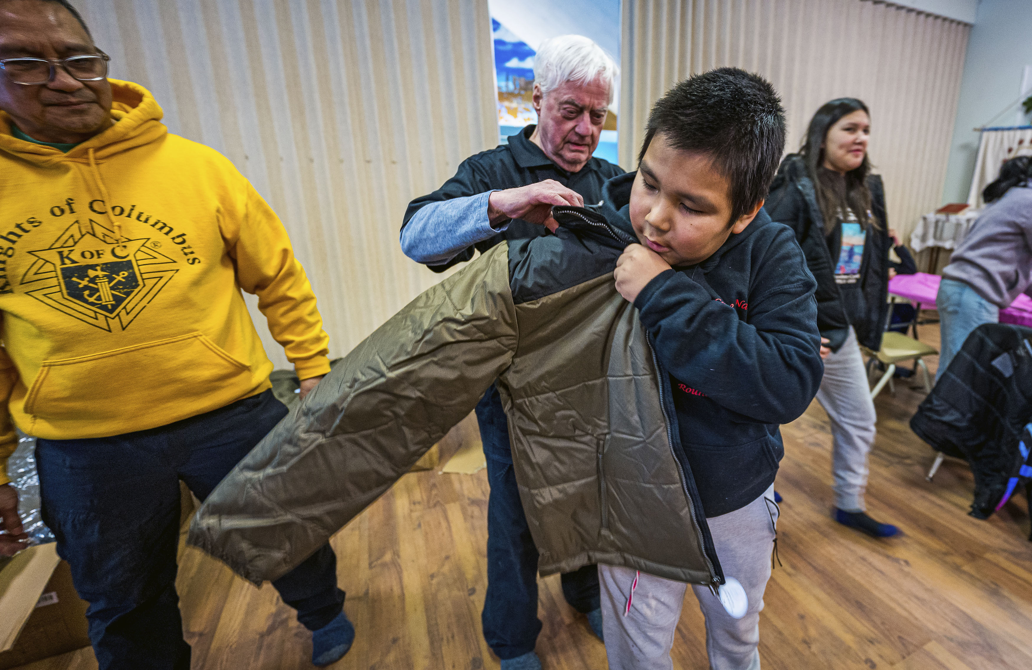 PUKATAWAGAN, Manitoba–(BUSINESS WIRE)–The Knights of Columbus delivered last week a special donation to the Cree First Nations community of Pukatawagan in northern Manitoba. A convoy of Knights made the drive through challenging winter roads to reach the village of 2,000 residents on February 26 and personally delivered 500 new winter coats for local children, 22 new high-quality beds and 10 wheelchairs to those with pressing healthcare needs. With the donation, the Knights of Columbus has distributed more than 300,000 new winter coats across the U.S. and Canada this winter, surpassing last year’s record of 286,000.