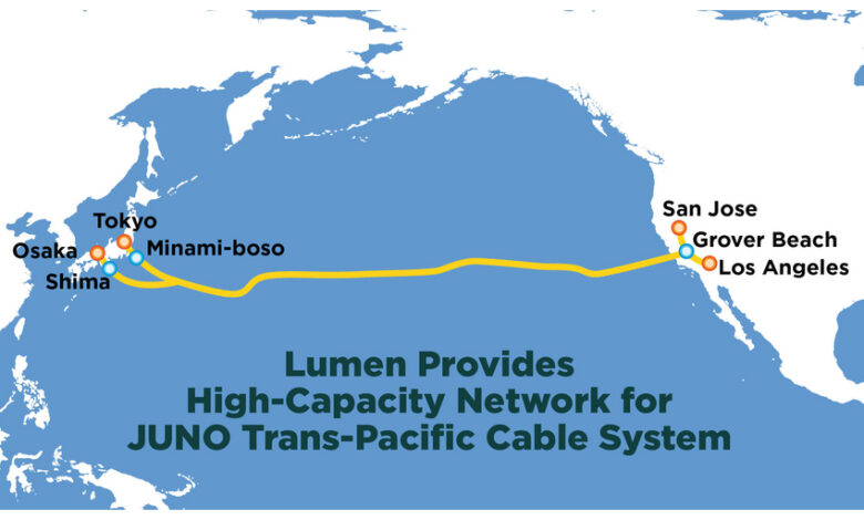DENVER–(BUSINESS WIRE)–With undersea cables accounting for more than 99% of international data traffic, a robust terrestrial network is vital for ensuring seamless, high-capacity data flows across continents. Lumen Technologies (NYSE: LUMN) announced it will provide the terrestrial backhaul connectivity for the JUNO Trans-Pacific Cable System, the highest-capacity trans-Pacific cable linking Japan and the United States. Lumen’s fiber network will carry traffic from the cable’s U.S. landing point in Grover Beach, Ca., to two major points of presence (PoPs) in San Jose and Los Angeles— helping to revolutionize business operations and technological advancements in both countries.