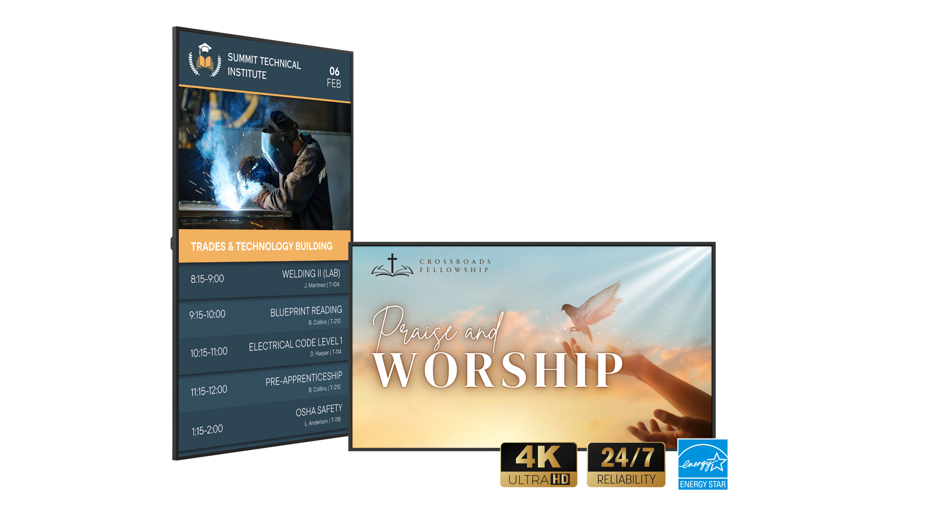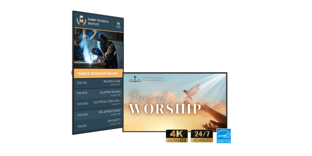 The next-generation line of large format LCD displays enhances essential digital signage with built-in WiFi and Bluetooth®, and reliable extended operation