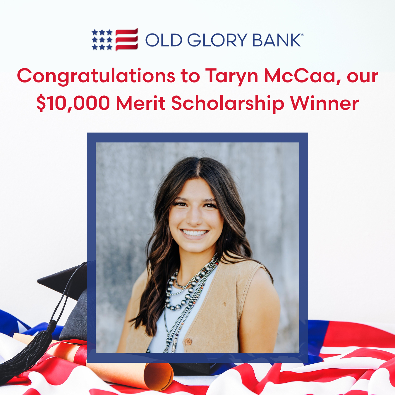 Through this competitive selection process, Old Glory Bank selected Taryn McCaa as the 2025 scholarship recipient.