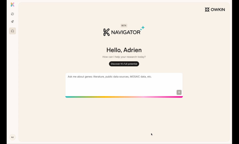 NEW YORK & PARIS–(BUSINESS WIRE)–Owkin, a leading agentic AI company, has launched K Navigator, an AI-powered research co-pilot designed to revolutionize biomedical science. K Navigator is an agentic playground where researchers can explore, refine, and validate hypotheses, accelerating the quality and pace of their discoveries. With K Navigator, Owkin moves closer to its vision of developing the worldโs first Biological Artificial Superintelligence (BASI).