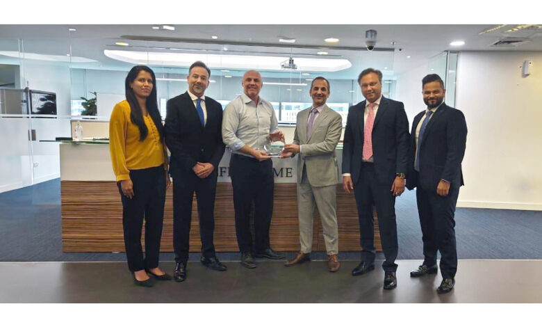 On behalf of AIG, Alexander Nezeritis — Head of Operations and Strategic Initiatives, GCC and North Africa at AIG presented the award to David Hayes — Regional CEO of Pacific Prime Dubai at Pacific Prime Dubai’s office alongside Sidharth Mohanty — Director of General Insurance, Pacific Prime Dubai and AIG delegates including Sunil Bambral — Head of Distribution, UAE at AIG, Vindhya Weligama — Underwriter, SME at AIG, and Rohan Srivastava — Business Development Manager, Broker Engagement at AIG on March 7, 2024.
