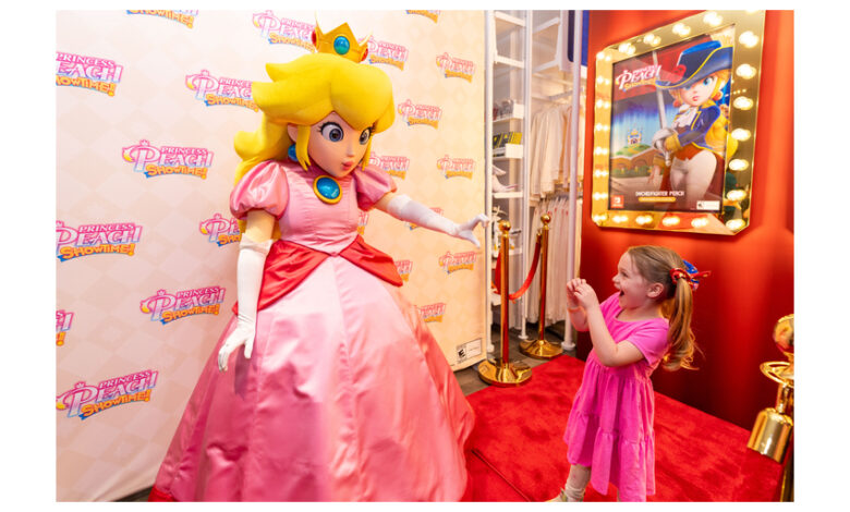 - In this photo provided by Nintendo of America, June E., 4, and Princess Peach celebrate the launch of the Princess Peach: Showtime! game at the Nintendo New York store in Rockefeller Center. The weekend-long event, which features gameplay on the Nintendo Switch system and theatrical photo ops, runs through March 24.